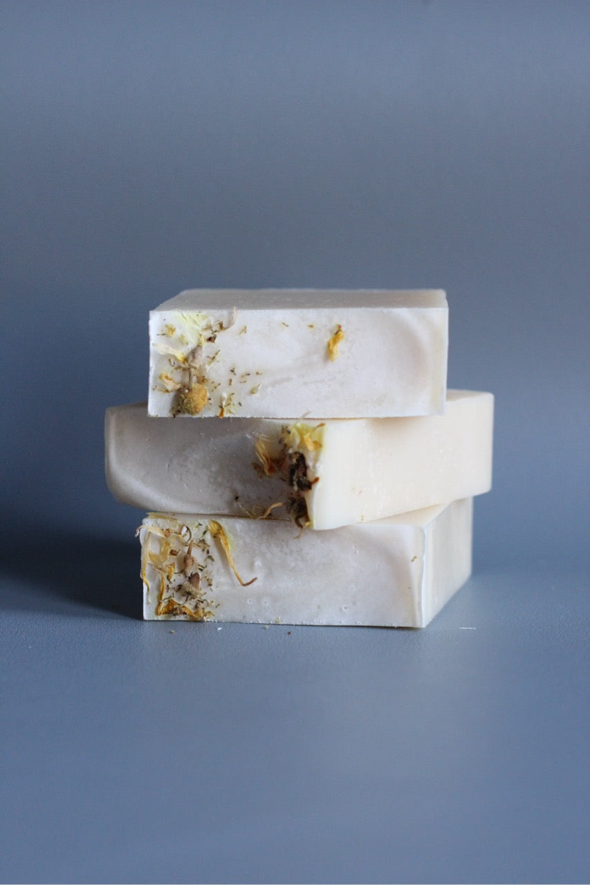 A fragrance-free bar enriched with a potent infusion of Arnica, Calendula, and Chamomile herbs to soothe inflammation and promote healing.